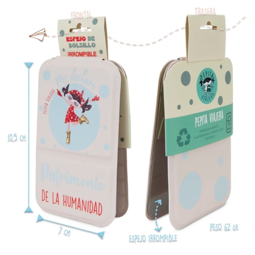 Κατασκευασμένος καθρέφτης από ανοξείδωτο ατσάλι και επικαλυμμένος με λείο φινίρισμα PU, είναι ανθεκτικός σε χτυπήματα, πτώσεις και γρατζουνιές. Το ορθογώνιο σχήμα και το συμπαγές μέγεθός του τον καθιστούν ιδανικό για μεταφορά σε μια τσάντα ή σακίδιο πλάτης από την ίδια συλλογή ή σε ένα νεσεσέρ, χωρίς να καταλαμβάνει πολύ χώρο.
