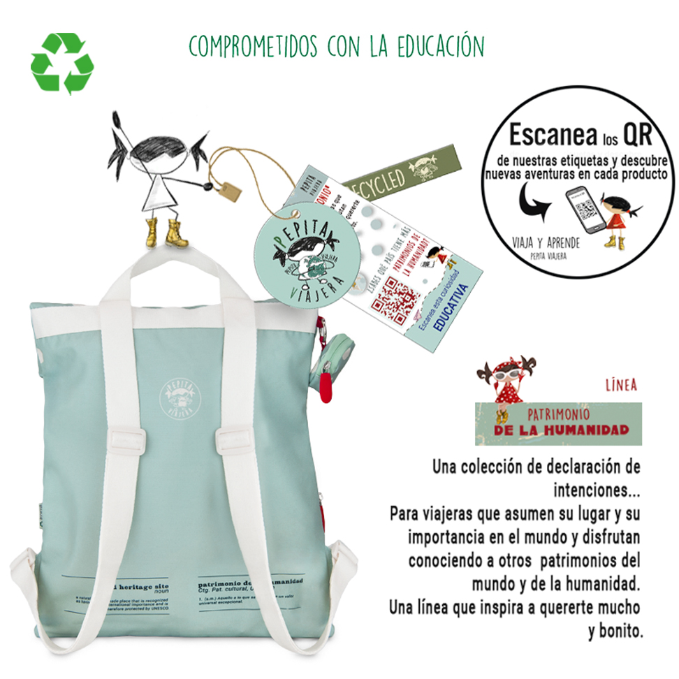 Ταξιδέψτε και μάθετε με την Pepita Viajera σαρώνοντας τον κωδικό QR που συνοδεύει κάθε αντικείμενο και ανακαλύψτε τον κόσμο μαζί της.