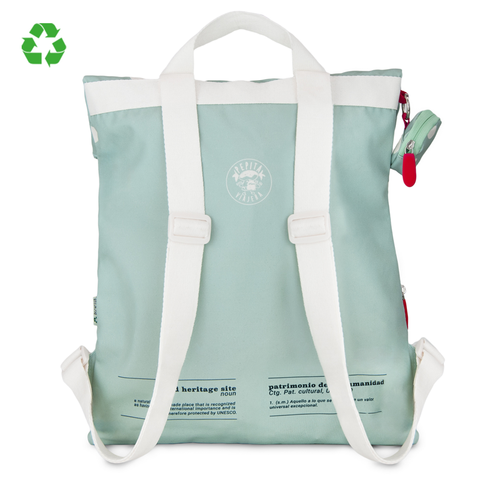 Ένα σακίδιο ευέλικτο και ελαφρύ σχεδιασμένο για τους λάτρεις του πολιτισμού και της περιπέτειας. Διαθέτει εσωτερική τσέπη, που επιτρέπει την καλύτερη οργάνωση των αντικειμένων σας, άνοιγμα με φερμουάρ και ρυθμιζόμενοι ιμάντες. Κατασκευασμένο από ανακυκλωμένο R-PET.