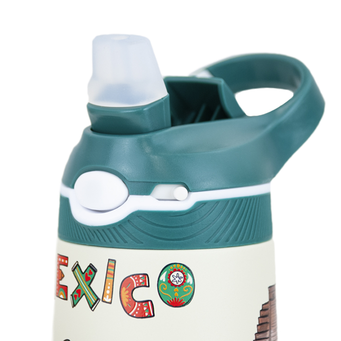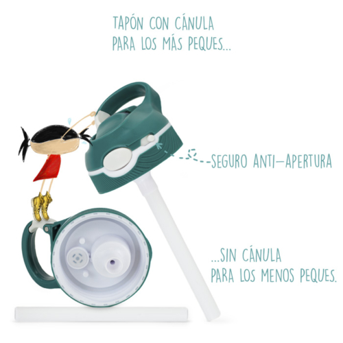 Με αυτό το μπουκάλι τα παιδιά μπορούν να απολαύσουν το νερό τους διατηρώντας το έως και 12 ώρες. H σχεδίαση του καπακιού ευνοεί την αυτονομία των μικρών και διαθέτει ειδικό σύστημα κατά των διαρροών, ώστε να μεταφέρεται με ασφάλεια στο σακίδιο τους. Διαθέτει γάντζο στο καπάκι για να μπορείτε να το μεταφέρετε και κρεμασμένο. Χωρίς BPA και φθαλικές ενώσεις. Εύκολο και διασκεδαστικό στη χρήση. Το στόμιο του μπουκαλιού ανοίγει με μια κίνηση και το παιδί πίνει εύκολα χωρίς να χύνεται το περιεχόμενο. Διαθέτει επίσης κλιπ ασφαλείας κλειδώματος για να μην ανοίγει το μπουκάλι όταν αποθηκεύεται μέσα στο σακίδιο.