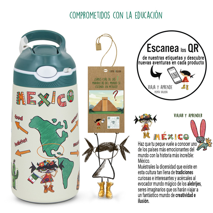 Ταξιδέψτε και μάθετε με την Pepita Viajera σαρώνοντας τον κωδικό QR που συνοδεύει κάθε αντικείμενο και ανακαλύψτε τον κόσμο μαζί της.