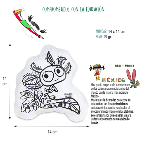 Η κούκλα alebrije είναι κομμάτι της μεξικανικής καλλιτεχνικής παράδοσης. Κατασκευασμένη από υλικά υψηλής ποιότητας, την καθιστά ανθεκτική και εύκολη στο καθάρισμα. Τα παιδιά μπορούν να απελευθερώσουν τη φαντασία και τη δημιουργικότητά τους ζωγραφίζοντας την κούκλα alebrije με τους 5 χρωματιστούς μαρκαδόρους οι οποίοι περιλαμβάνονται. Όποτε θέλουν να ξεκινήσουν από την αρχή ή να κάνουν αλλαγές στο αριστούργημά τους, μπορούν απλά να πλύνουν την κούκλα και να ξεκινήσουν και πάλι.