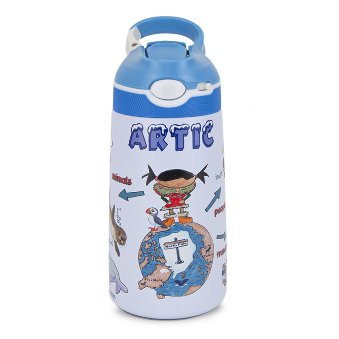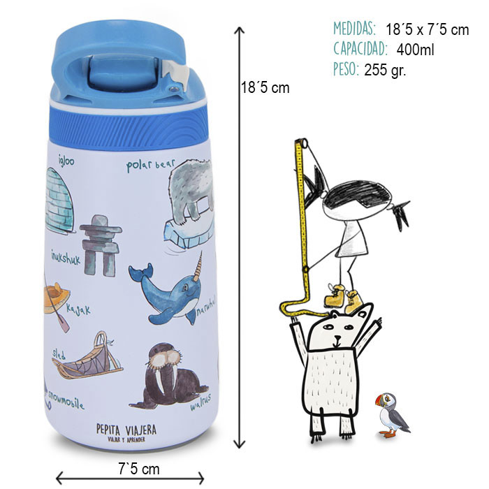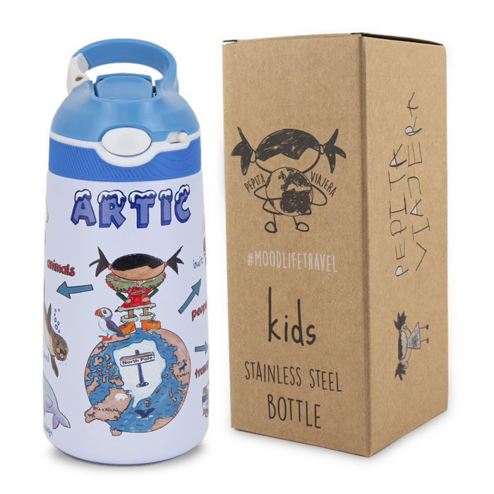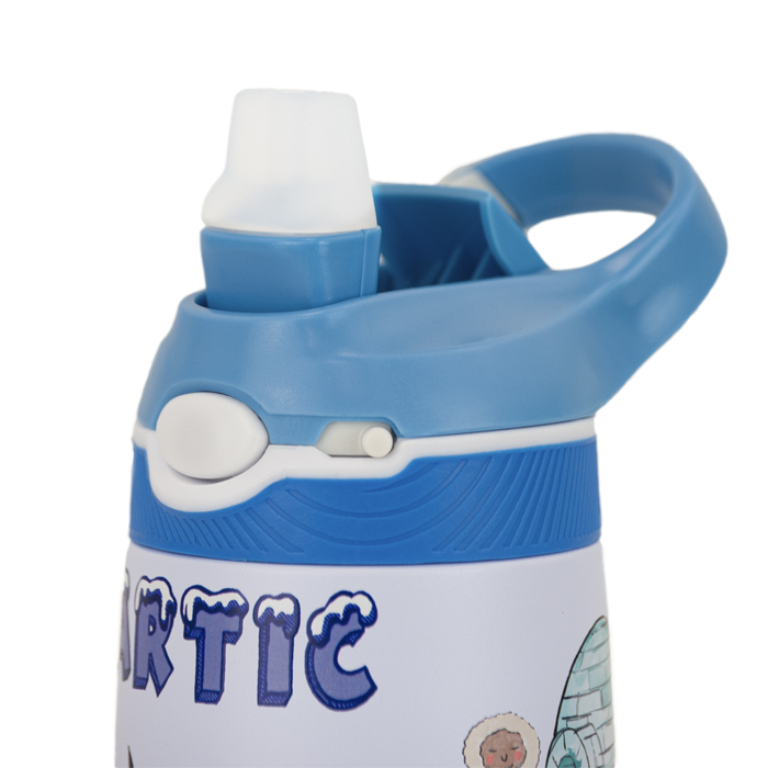Με αυτό το μπουκάλι τα παιδιά μπορούν να απολαύσουν το νερό τους διατηρώντας το έως και 12 ώρες. H σχεδίαση του καπακιού ευνοεί την αυτονομία των μικρών και διαθέτει ειδικό σύστημα κατά των διαρροών, ώστε να μεταφέρεται με ασφάλεια στο σακίδιο τους. Διαθέτει γάντζο στο καπάκι για να μπορείτε να το μεταφέρετε και κρεμασμένο. Χωρίς BPA και φθαλικές ενώσεις. Εύκολο και διασκεδαστικό στη χρήση. Το στόμιο του μπουκαλιού ανοίγει με μια κίνηση και το παιδί πίνει εύκολα χωρίς να χύνεται το περιεχόμενο. Διαθέτει επίσης κλιπ ασφαλείας κλειδώματος για να μην ανοίγει το μπουκάλι όταν αποθηκεύεται μέσα στο σακίδιο.