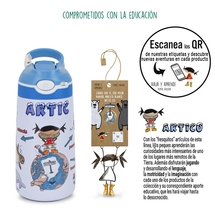 Ταξιδέψτε και μάθετε με την Pepita Viajera σαρώνοντας τον κωδικό QR που συνοδεύει κάθε αντικείμενο και ανακαλύψτε τον κόσμο μαζί της.