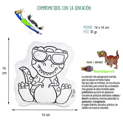 Το μαλακό παιχνίδι που απεικονίζει τον τυραννόσαυρο, είναι ο τέλειος καμβάς για τη δημιουργικότητα των παιδιών. Είναι κατασκευασμένο με υλικά υψηλής ποιότητας, που το καθιστά ανθεκτικό και εύκολο στο καθάρισμα. Τα παιδιά μπορούν να απελευθερώσουν τη φαντασία και τη δημιουργικότητά τους χρησιμοποιώντας τους 5 χρωματιστούς μαρκαδόρους που περιλαμβάνονται. Είναι μια ευκαιρία για τα παιδιά να εξερευνήσουν τον συναρπαστικό κόσμο των δεινοσαύρων.