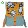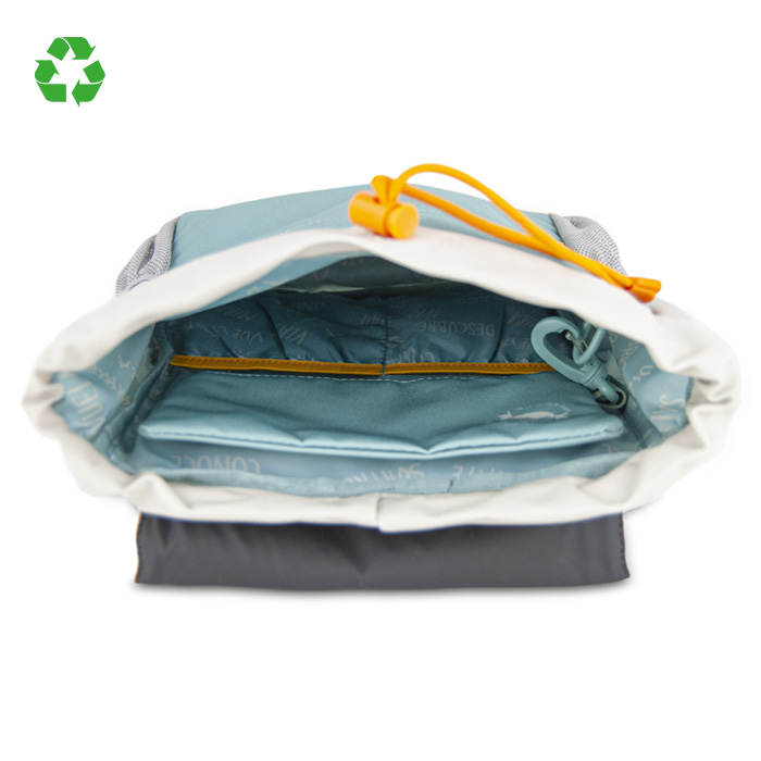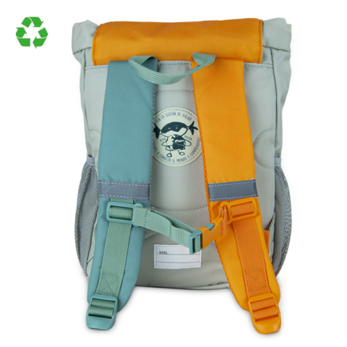 Αυτό το παιδικό σακίδιο είναι ελαφρύ με άνετες χειρολαβές και μπροστινούς ιμάντες ώστε το σακίδιο να μην γλιστράει προς τα πίσω. Διαθέτει πολλές μπροστινές και πλαϊνές τσέπες, όπου μπορείτε να κρατάτε όλα σας τα πράγματα οργανωμένα και να τα βρίσκετε εύκολα. Διαθέτει επίσης αφαιρούμενο τσαντάκι, προσαρμοσμένο στο εσωτερικό του σακιδίου με κλιπ. Επίσης, είναι σχεδιασμένο έτσι ώστε το μικρό σας να διασκεδάζει μαζί του, ζωγραφίζοντας στον μαυροπίνακα που είναι ενσωματωμένος στο εσωτερικό του. Κατασκευασμένο με ανακυκλωμένο υλικό R-PET.