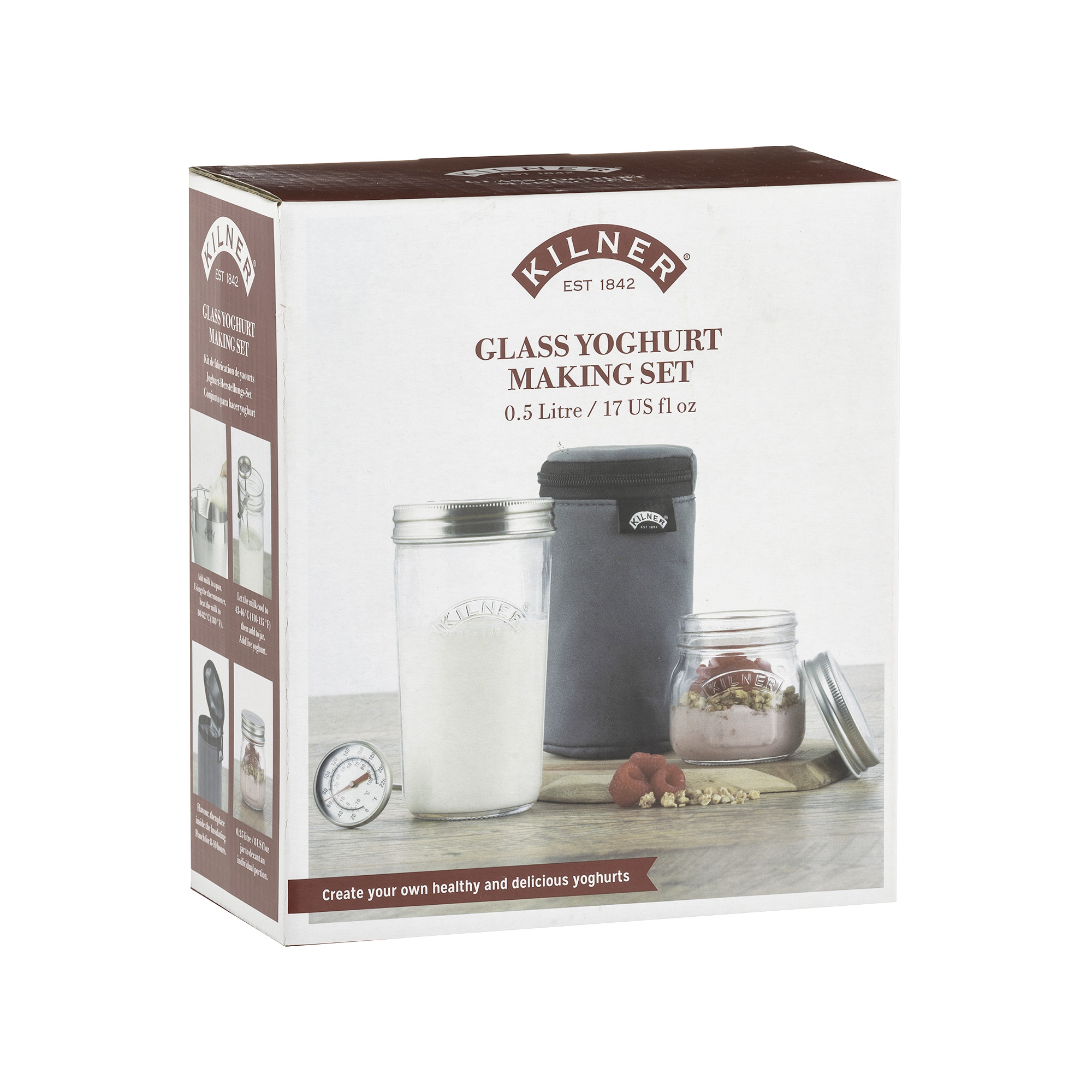Το σετ παρασκευής γιαουρτιού είναι τέλειο για την παρασκευή γιαουρτιού. Περιλαμβάνει δύο βάζα, ένα για την παρασκευή του γιαουρτιού κι ένα για την φύλαξη του. Επίσης περιλαμβάνει μια ισοθερμική θήκη για να φυλάσσεται το δοχείο κατά τη διαδικασία της ζύμωσης και ένα θερμόμετρο για την παρακολούθηση της θερμοκρασίας στην αρχή της διαδικασίας.