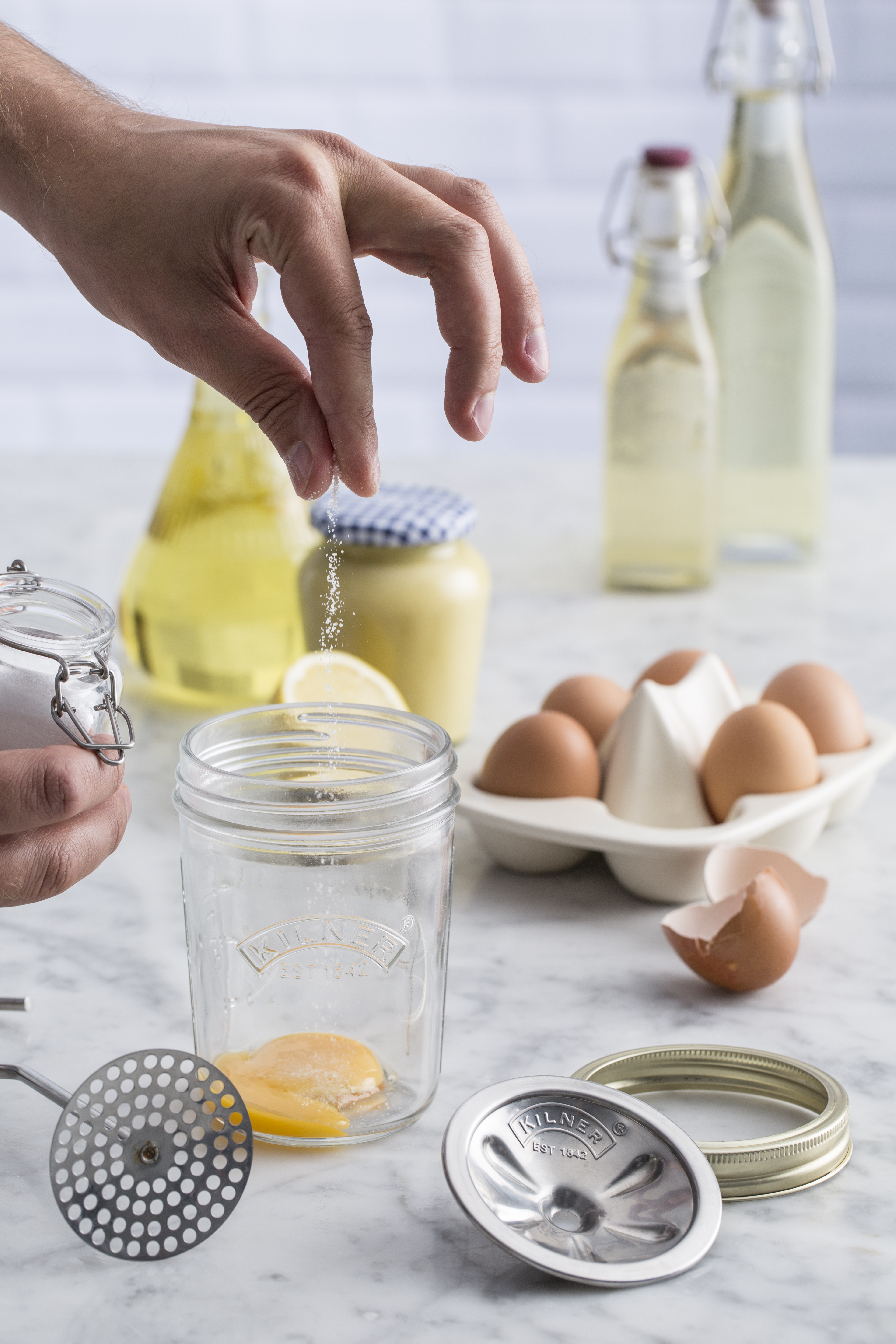 Με αυτό το σετ είναι απίστευτα εύκολο να φτιάξετε φρέσκια μαγιονέζα και σάλτσες. Για να φτιάξετε μαγιονέζα, απλά γεμίστε τη βάση του βάζου με κρόκο αυγού, χυμό λεμονιού, αλάτι, μουστάρδα και πιπέρι. Τοποθετήστε το έμβολο και το δοχείο λαδιού μέσα στο βάζο και σφίξτε με τη βιδωτή ταινία. Ρίξτε λάδι στο δοχείο λαδιού ενώ μετακινείτε το έμβολο πάνω-κάτω. Μετά από περίπου 3 με 4 λεπτά η συνοχή θα είναι έτοιμη για σερβίρισμα. Άλλες σάλτσες μπορούν επίσης να δημιουργηθούν χρησιμοποιώντας αυτό το εύχρηστο gadget κουζίνας.