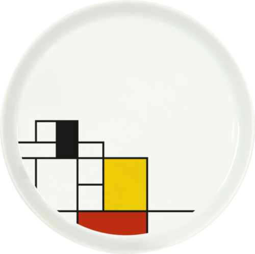Τετράγωνα και ορθογώνια σχήματα σε διάφορα χρώματα κοσμούν αυτό το πιάτο. Ένα απλό και κομψό στυλ. Αφιέρωμα στον Ολλανδό καλλιτέχνη Piet Mondrian. Αυτό το έργο τέχνης κάνει το πιάτο πολύ ιδιαίτερο. Απολαύστε το πρωινό, το μεσημεριανό ή το δείπνο σας σε ένα πιάτο Koenitz.