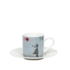 Στο πιατάκι του φλυτζανιού μπορείτε να βρείτε έναν κωδικό QR που θα σας επιτρέψει να έχετε πρόσβαση σε αποκλειστικό ψηφιακό περιεχόμενο για τον Banksy και την τέχνη του, απολαμβάνοντας ταυτόχρονα τον καφέ σας.