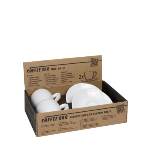 Το φλυτζάνι «Two» είναι ιδανικό για διπλό εσπρέσο ή μονό ελληνικό και εξασφαλίζει ότι ο καφές σχηματίζει τη χαρακτηριστική κρέμα. Η χοντρή πορσελάνη μπορεί να προθερμανθεί για να κρατήσει το περιεχόμενο ζεστό για περισσότερο διάστημα.