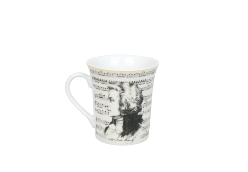 Αυτή η αποκλειστική κούπα είναι ένας φόρος τιμής στον Wolfgang Amadeus Mozart, τον μάστορα της βιεννέζικης κλασικής μουσικής. Με ένα περίτεχνο πορτρέτο του Μότσαρτ και μια μουσική παρτιτούρα στο βάθος, φέρνει την κλασική κομψότητα στην καθημερινότητά σας. Το κομψό χρυσό χείλος δίνει στο σχέδιο μια αριστοκρατική πινελιά και το κάνει τον τέλειο σύντροφο για τους λάτρεις της κλασικής μουσικής. Ένα ιδιαίτερο χαρακτηριστικό: μέσα στην κούπα υπάρχει ένας κωδικός QR στο προφίλ του Μότσαρτ – απλώς σαρώστε τον για να μάθετε περισσότερα για τη ζωή και το έργο αυτής της μουσικής ιδιοφυΐας. Ιδανικό για τους λάτρεις της μουσικής, τους λάτρεις του πολιτισμού και όποιον θέλει να προσθέσει μια νότα κλασικής μουσικής στον καφέ του.