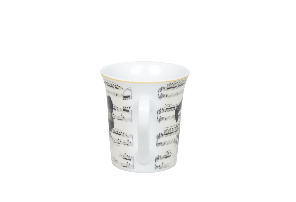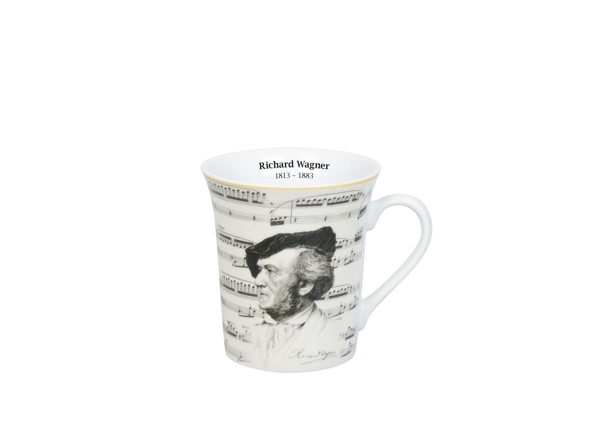 Αυτή η αποκλειστική κούπα είναι ένας φόρος τιμής στον Richard Wagner, τον κύριο της ρομαντικής μουσικής. Με ένα καλλιτεχνικό πορτρέτο του Βάγκνερ και μια μουσική παρτιτούρα στο βάθος, φέρνει την κλασική κομψότητα στην καθημερινότητά σας. Το κομψό χρυσό χείλος δίνει στο σχέδιο μια αριστοκρατική πινελιά και το κάνει τον τέλειο σύντροφο για τους λάτρεις της κλασικής μουσικής. Ένα ιδιαίτερο χαρακτηριστικό: μέσα στην κούπα υπάρχει ένας κωδικός QR στο προφίλ του Wagner – απλώς σαρώστε τον για να μάθετε περισσότερα για τη ζωή και το έργο αυτής της μουσικής ιδιοφυΐας. Ιδανικό για τους λάτρεις της μουσικής, τους λάτρεις του πολιτισμού και όποιον θέλει να προσθέσει μια νότα κλασικής μουσικής στον καφέ του.