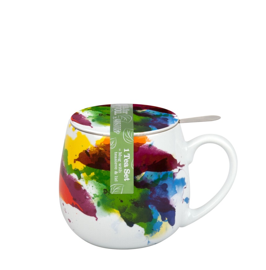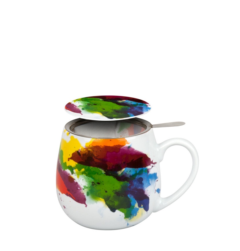 Οι παιχνιδιάρικες πινελιές χρωμάτων σίγουρα θα φέρουν ένα χαμόγελο στο πρόσωπο εκείνου που θα χρησιμοποιήσει αυτήν την κούπα. Αποτελούμενο από υψηλής ποιότητας πορσελάνινη κούπα και καπάκι, καθώς και ασορτί φίλτρο, αυτή η κούπα είναι ιδανική για τους λάτρεις του τσαγιού.