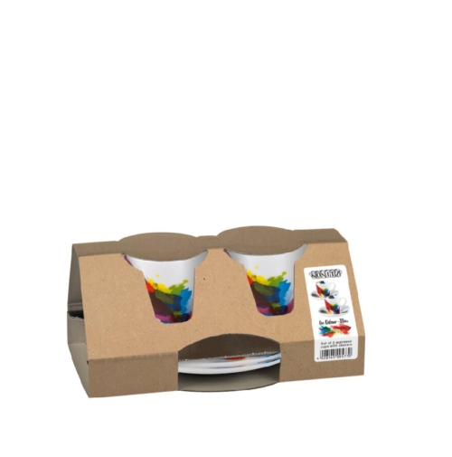 Αυτό το σετ, με 2 φλυτζάνια espresso και τα πιατάκια τους, κοσμεί μια ζωντανή θάλασσα από χρώματα. Πράσινο, μπλε, κόκκινο, πορτοκαλί και κίτρινο αναμειγνύονται μεταξύ τους και ρέουν σε ευφάνταστα μοτίβα. Έτσι, ακόμα και τις γκρίζες μέρες, η καλή διάθεση είναι εγγυημένη στο τραπέζι. To καταλληλότερο δώρο αν αναζητάτε κάτι ιδιαίτερο για τα αγαπημένα σας πρόσωπα.