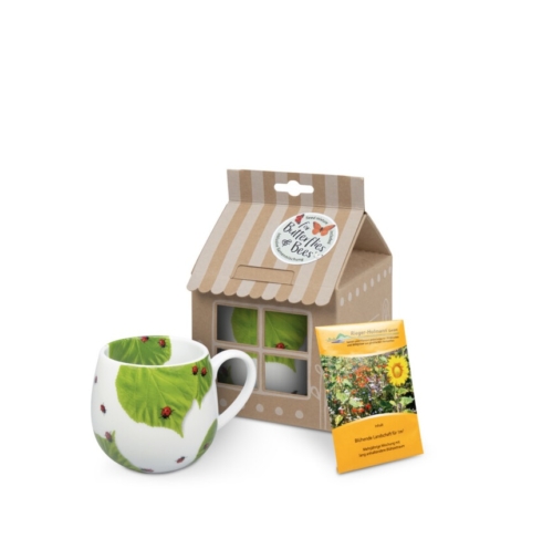 Η κούπα είναι διακοσμημένη με πράσινα φύλλα και μικρές πασχαλίτσες και χάρη στο σχήμα της, βοηθάει να ζεσταθούν τα κρύα χέρια την κρύα εποχή. Περιποιηθείτε τον εαυτό σας ή τους αγαπημένους σας με αυτήν την υπέροχη κούπα σε συσκευασία δώρου. Θα λάβετε επίσης ένα πακέτο με σπόρους λουλουδιών για να φυτεύσετε στον κήπο ή σε μια γλάστρα στο μπαλκόνι σας.