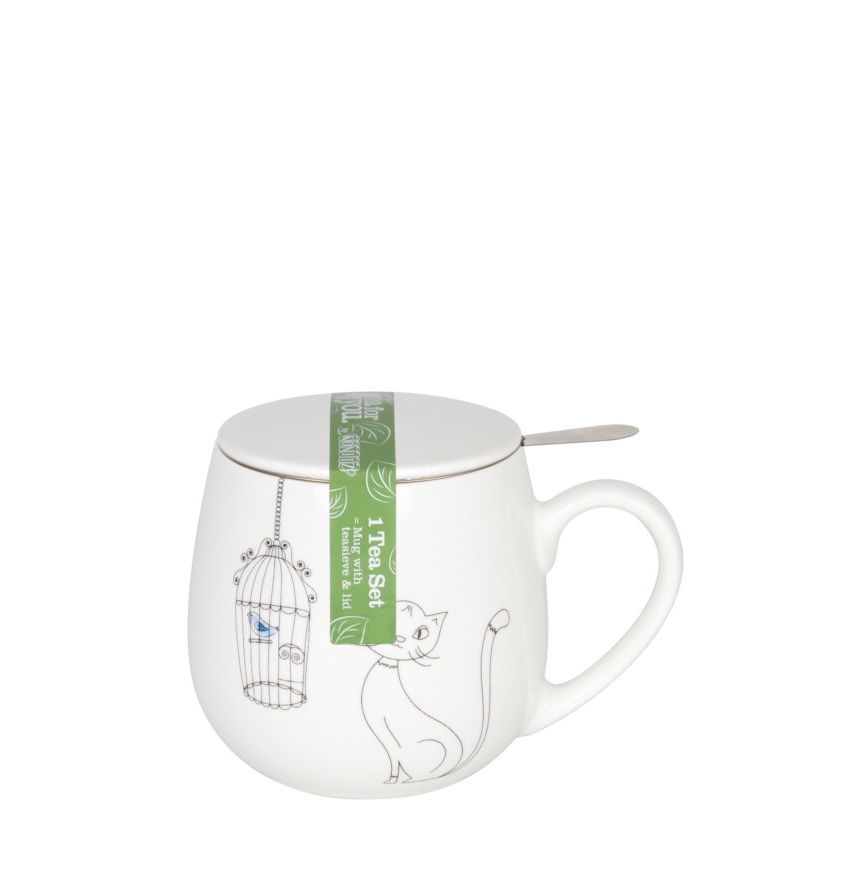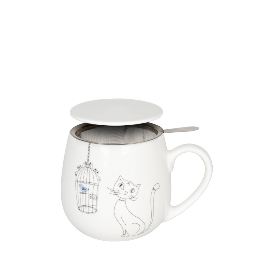 Αυτή η μοναδική κούπα μαγεύει με το αξιολάτρευτο μοτίβο που παρουσιάζει γάτες και πουλιά σε αρμονικό παιχνίδι. Είτε πρόκειται για τον πρωινό σας καφέ, είτε για ένα χαλαρωτικό τσάι το βράδυ, αυτή η κούπα είναι μια υπέροχη επιλογή.