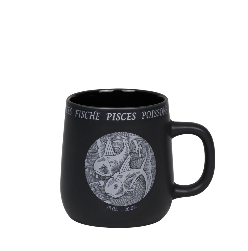 Αυτή η μαύρη κούπα με το σύμβολο των Ιχθύων είναι ένας φόρος τιμής στο δωδέκατο ζώδιο του ζωδιακού κύκλου. Οι Ιχθύες είναι γνωστοί για την ευαίσθητη φύση τους και την απεριόριστη φαντασία τους. Συναισθηματικοί και συμπονετικοί, οι Ιχθύες έχουν μεγάλη καρδιά και ενσυναίσθηση. Είναι διαισθητικοί, συχνά αισθάνονται τις ανάγκες των άλλων πριν εκφραστούν. Οι Ιχθύες είναι αληθινοί καλλιτέχνες και ονειροπόλοι. Η πλούσια φαντασία και το δημιουργικό τους πνεύμα τους επιτρέπουν να ζουν σε έναν κόσμο γεμάτο δυνατότητες. Τους αρέσει να χάνονται στις ονειροπολήσεις και να εξερευνούν νέες ιδέες.