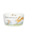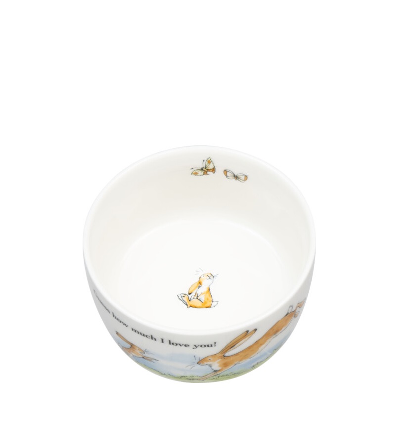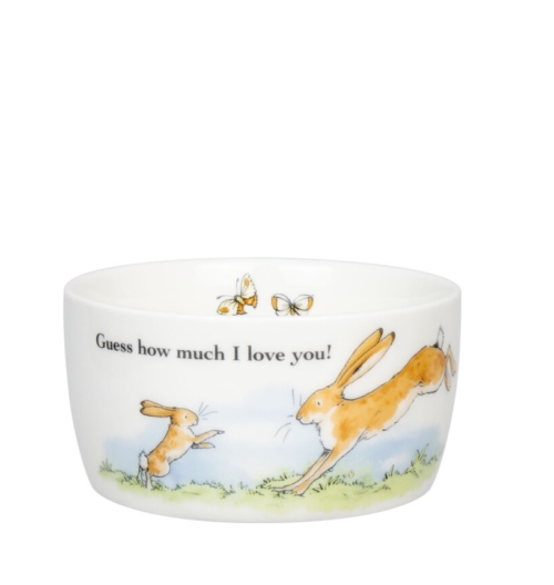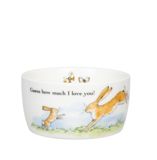 Κατασκευασμένo από υψηλής ποιότητας πορσελάνη, αυτό το μπολ διαθέτει ένα υπέροχο σχέδιο εμπνευσμένο από το μαγευτικό κλασικό παιδικό βιβλίο «Μάντεψε πόσο σ” αγαπώ». Οι συγκινητικές εικονογραφήσεις των δύο λαγών συμβολίζουν την άνευ όρων αγάπη και στοργή.