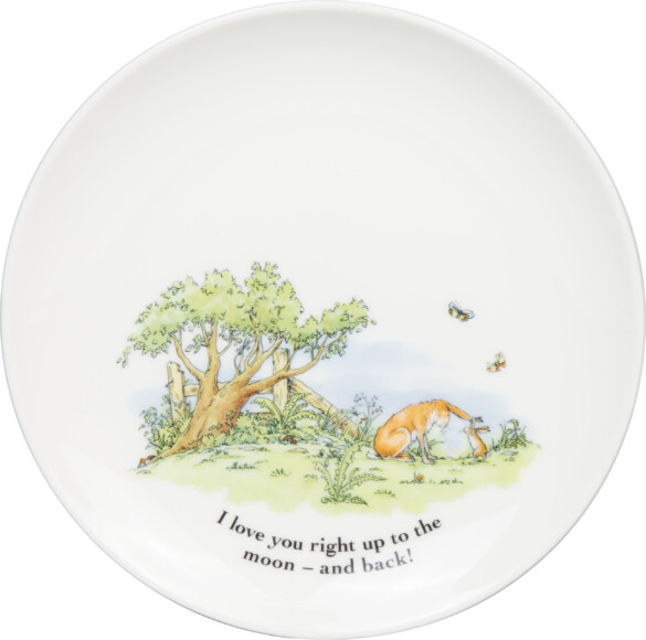 Κατασκευασμένo από υψηλής ποιότητας πορσελάνη, αυτό το πιάτο διαθέτει ένα υπέροχο σχέδιο εμπνευσμένο από το μαγευτικό κλασικό παιδικό βιβλίο «Μάντεψε πόσο σ” αγαπώ». Οι συγκινητικές εικονογραφήσεις των δύο λαγών συμβολίζουν την άνευ όρων αγάπη και στοργή.