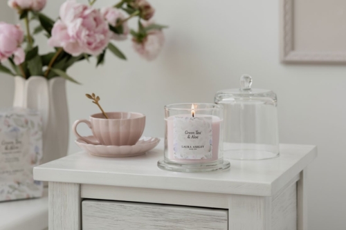 Το κερί αιχμαλωτίζει ην καθαρότητα της φύσης, συνδυάζοντας τις δροσερές, αναζωογονητικές νότες της αλόης με την λεπτή και φυσική αύρα του πράσινου τσαγιού.