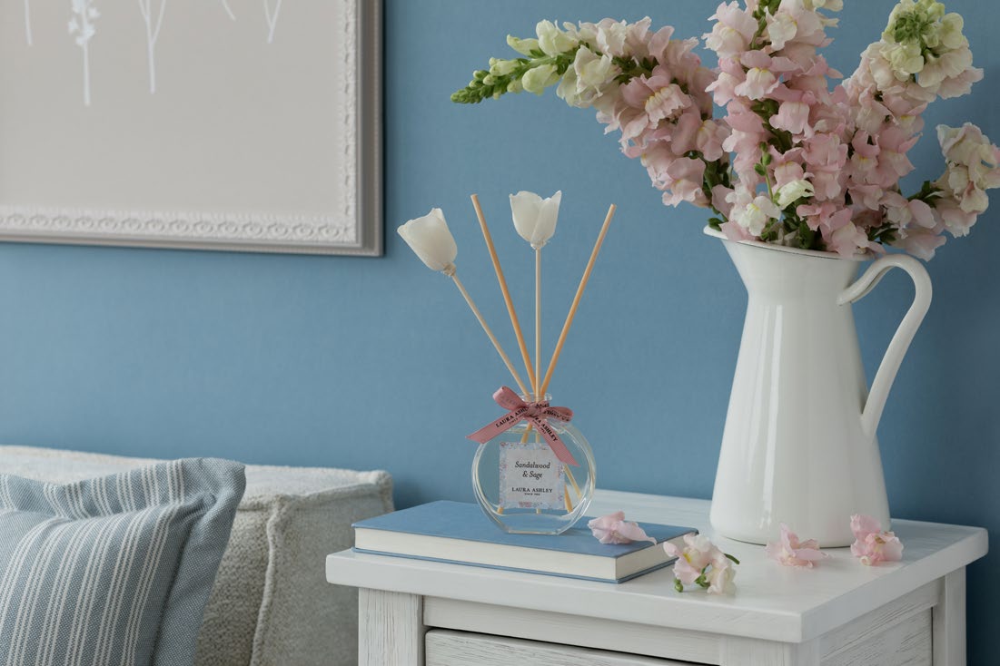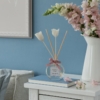 Γεμίστε τον χώρο σας με διακριτική κομψότητα και φυσική φρεσκάδα με αυτόν τον όμορφο αρωματικό διαχυτή που διαθέτει γυάλινο μπουκάλι με 4 ξύλινα στικς, τα δύο με πανέμορφο τελείωμα λουλουδιών.