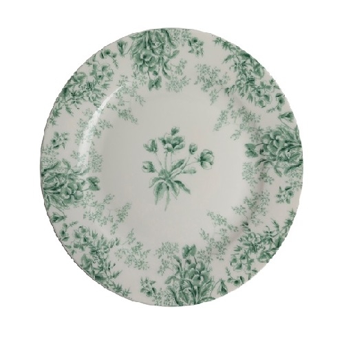 Το πιάτο διαθέτει ένα εξαιρετικό φλοράλ σχέδιο σε απαλό πράσινο χρώμα και συνδυάζει ομορφιά και πρακτικότητα. Η vintage εμφάνιση και η εξαιρετική του ποιότητα το καθιστούν το τέλειο κεντρικό στοιχείο τόσο για επίσημα δείπνα όσο και για καθημερινή χρήση.