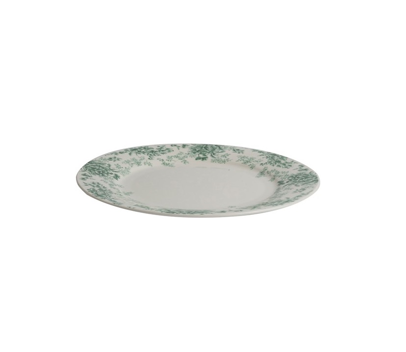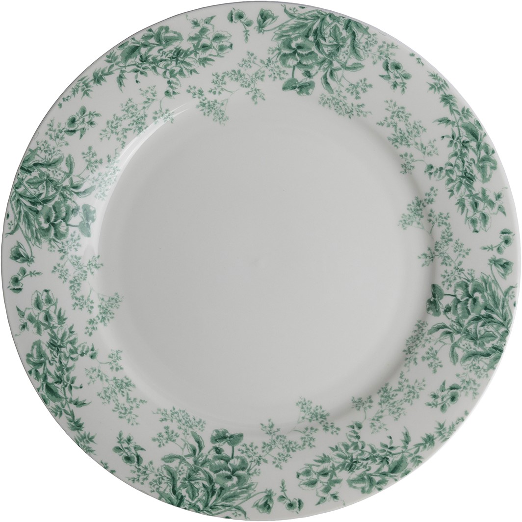 Το πιάτο διαθέτει ένα εξαιρετικό φλοράλ σχέδιο σε απαλό πράσινο χρώμα και συνδυάζει ομορφιά και πρακτικότητα. Η vintage εμφάνιση και η εξαιρετική του ποιότητα το καθιστούν το τέλειο κεντρικό στοιχείο τόσο για επίσημα δείπνα όσο και για καθημερινή χρήση.