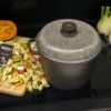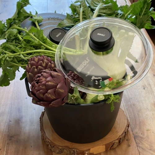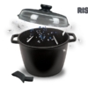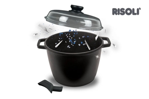 Risoli-BLACKplus Μαρμίτα 24′ – 97WBP/24. Η σειρά προϊόντων BLACKplus περιλαμβάνει την τελευταίας γενιάς επίστρωση El Diamant που εγγυάται μια άνευ προηγουμένου αντοχή στις γρατζουνιές και εξαιρετική αντικολλητική ιδιότητα. Το σώμα του σκεύους είναι κατασκευασμένο από χυτό αλουμίνιο, το οποίο έχει την ιδιότητα να κατανέμει ομοιόμορφα την θερμότητα και σε συνδυασμό με τα ορυκτά σωματίδια με τα οποία είναι φτιαγμένη η επίστρωση El Diamant εξασφαλίζουν ένα υγιεινό μαγείρεμα χωρίς την χρήση λίπους. Μια σειρά προϊόντων δοκιμασμένη για πάνω από 40.000 κύκλους χρήσης
