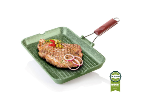 Risoli Dr Green-Γκριλιέρα 26X36 χυτού αλουμινίου με αποσπώμενη λαβή για να μπαίνει και στον φούρνο .ΤΟ ΜΟΝΑΔΙΚΟ ΜΕ ΒΙΟΔΙΑΣΠΩΜΕΝΗ ΑΝΤΙΚΟΛλΗΤΙΚΗ ΟΥΣΙΑ ΒΑΣΙΣΜΕΝΗ ΣΤΟ ΝΕΡΟ (GREEN STONE) ,ΤΕΤΡΑΠΛΑΣΙΑΣ ΑΝΤΟΧΗΣ ΚΑΙ ΑΝΤΙΚΟΛΛΗΤΙΚΟΤΗΤΑΣ ΑΠΟ ΕΝΑ ΣΥΜΒΑΤΙΚΟ ΤΗΓΑΝΙ. Είναι το ιδανικό σκεύος για πραγματικά υγιεινό και ασφαλές μαγείρεμα, χωρίς τα τρόφιμα να χάνουν τις θρεπτικές τους ουσίες.