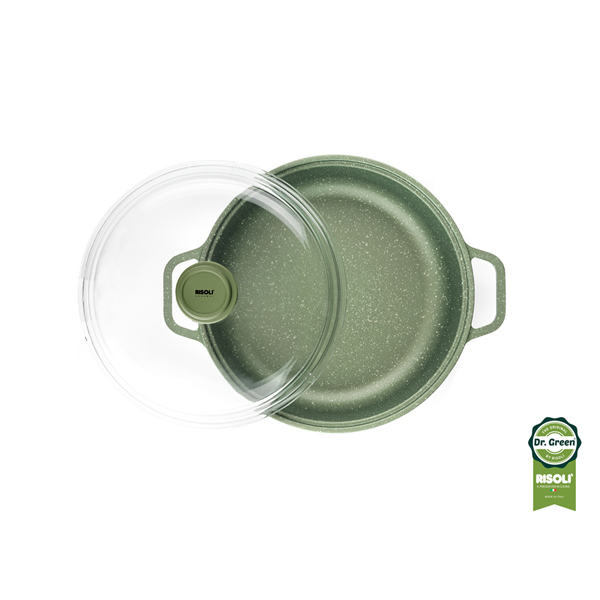 Risoli Dr Green-Ημίχυτρα 28′ επαγωγική χυτού αλουμινίου .ΤΟ ΜΟΝΑΔΙΚΟ ΜΕ ΒΙΟΔΙΑΣΠΩΜΕΝΗ ΑΝΤΙΚΟΛλΗΤΙΚΗ ΟΥΣΙΑ ΒΑΣΙΣΜΕΝΗ ΣΤΟ ΝΕΡΟ (GREEN STONE) ,ΤΕΤΡΑΠΛΑΣΙΑΣ ΑΝΤΟΧΗΣ ΚΑΙ ΑΝΤΙΚΟΛΛΗΤΙΚΟΤΗΤΑΣ ΑΠΟ ΕΝΑ ΣΥΜΒΑΤΙΚΟ ΤΗΓΑΝΙ. Είναι το ιδανικό σκεύος για πραγματικά υγιεινό και ασφαλές μαγείρεμα, χωρίς τα τρόφιμα να χάνουν τις θρεπτικές τους ουσίες.