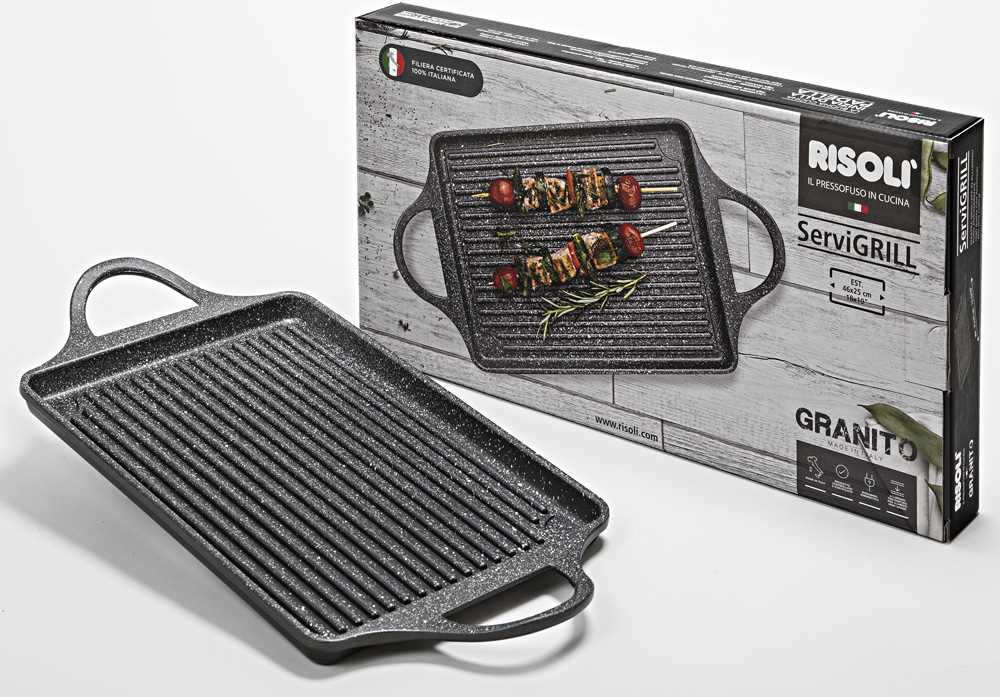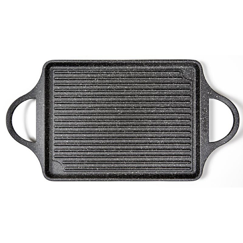 Επιφάνεια ψησίματος 46x25cm .ΜΕ ΑΝΤΙΚΟΛΛΗΤΙΚΗ ΕΠΙΣΤΡΩΣΗ ΓΡΑΝΙΤΗ. Είναι περισσότερο ανθεκτικό στην τριβή απο τα απλά συμβατικά αντικολλητικά τηγάνια χάρη στο ενισχυμένο σύστημα με ορυκτά σωματίδια. Είναι το ιδανικό σκεύος για πραγματικά υγιεινό και ασφαλές μαγείρεμα, χωρίς τα τρόφιμα να χάνουν τις θρεπτικές τους ουσίες.