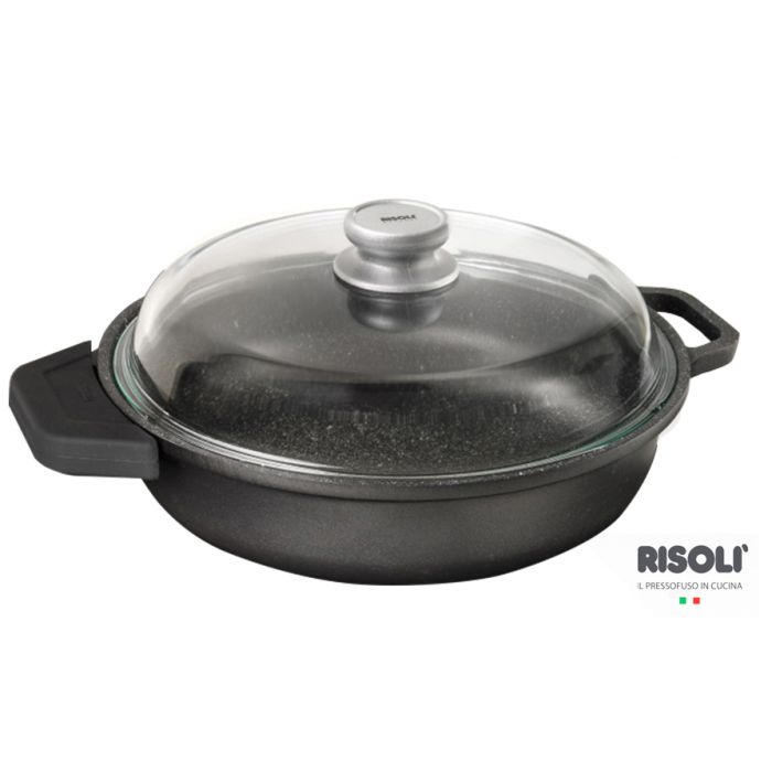 Risoli-Granito Induction Ημίχυτρα 28′ χυτού αλουμινίου με γυάλινο καπάκι. ΜΕ ΑΝΤΙΚΟΛΛΗΤΙΚΗ ΕΠΙΣΤΡΩΣΗ ΓΡΑΝΙΤΗ. Είναι περισσότερο ανθεκτικό στην τριβή απο τα απλά συμβατικά αντικολλητικά τηγάνια χάρη στο ενισχυμένο σύστημα με ορυκτά σωματίδια. Είναι το ιδανικό σκεύος για πραγματικά υγιεινό και ασφαλές μαγείρεμα, χωρίς τα τρόφιμα να χάνουν τις θρεπτικές τους ουσίες. Για Επαγωγικές εστίες