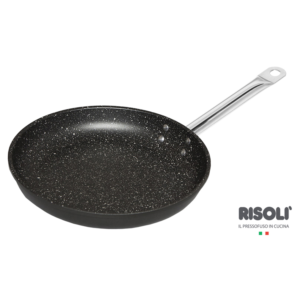 Επαγγελματικό τηγάνι 24cm χυτού αλουμινίου με επίστρωση γρανίτη, εξαιρετικής αντικολλητικότητας και αντοχής.Με τριετή εγγυήση για επαγγελματική χρήση.Με λαβές απο ανοξείδωτο ατσάλι και τοποθετημένα με καρφιά .Μαγειρεύει σε λιγότερο χρόνο και σε χαμηλότερη θερμοκρασία χάρη στη σωστή κατανομή θερμότητας,ιδιότητα που προσδίδει το χυτό αλουμίνιο.
